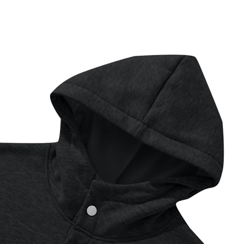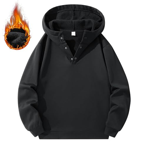Mens Fleece Linen Hooded Sweatshirts Casual Loose Half Button Long Sleeve Oversized Pullover Hoodie Streetwear Tops