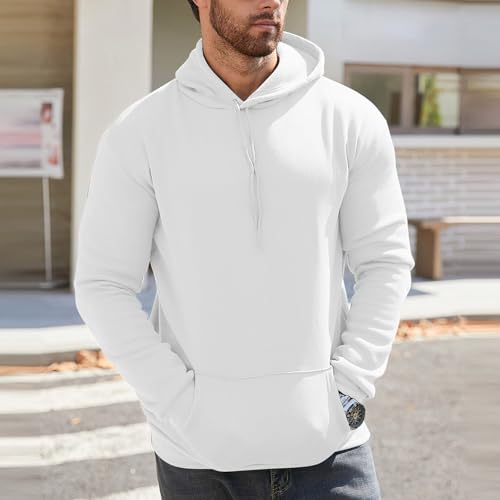 sizzling ! Mens Hoodies Pullover Solid Color Casual Long Sleeve Sweatshirts Winter Heavyweight Hooded Sweatshirts with Pockets