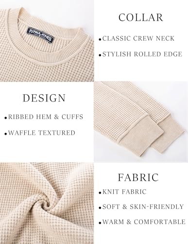 PJ PAUL JONES Mens Sweater Crewneck Knit Sweaters Casual Waffle Pullover Sweater for Men