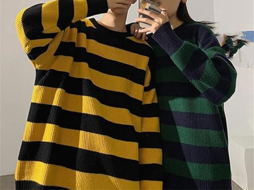 Men's Vintage Striped Sweater Loose Fit Knit Pullover Winter Streetwear Top