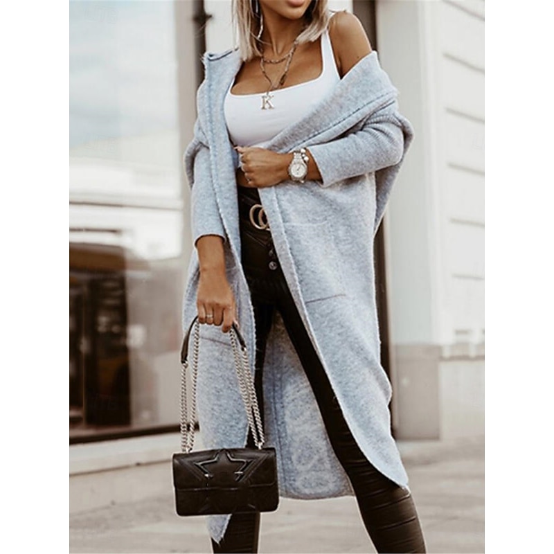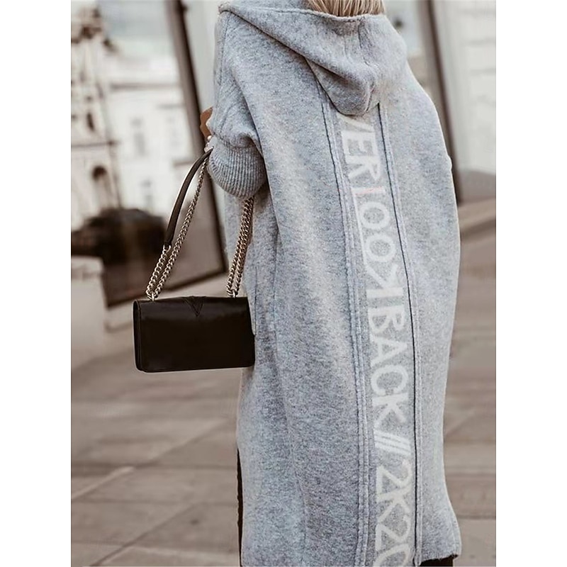 Women's Sweater Cardigan Casual smooth Letter Ribbed Hooded Pocket Knitted Long Sleeve Long Tops Knit Outdoor Daily Weekend Light Brown Blue Fall Winter