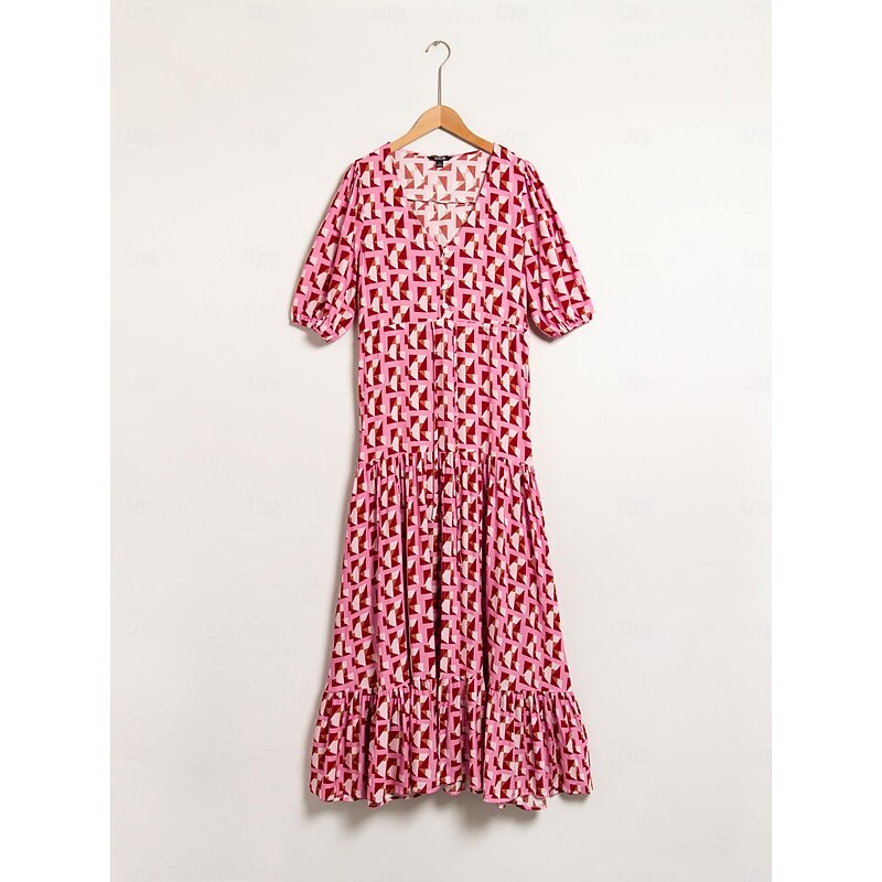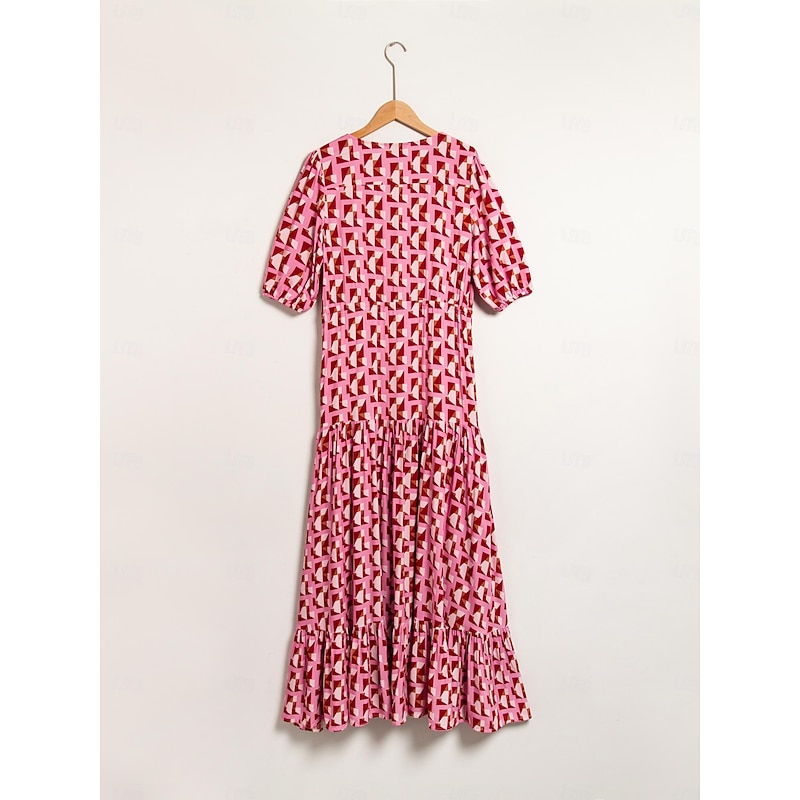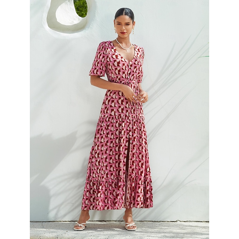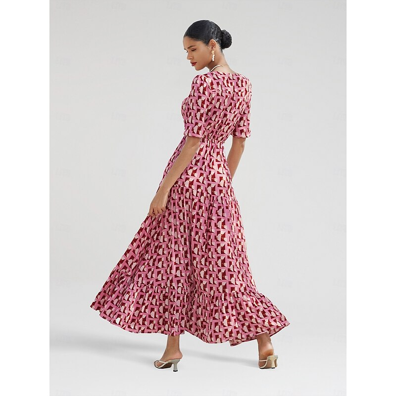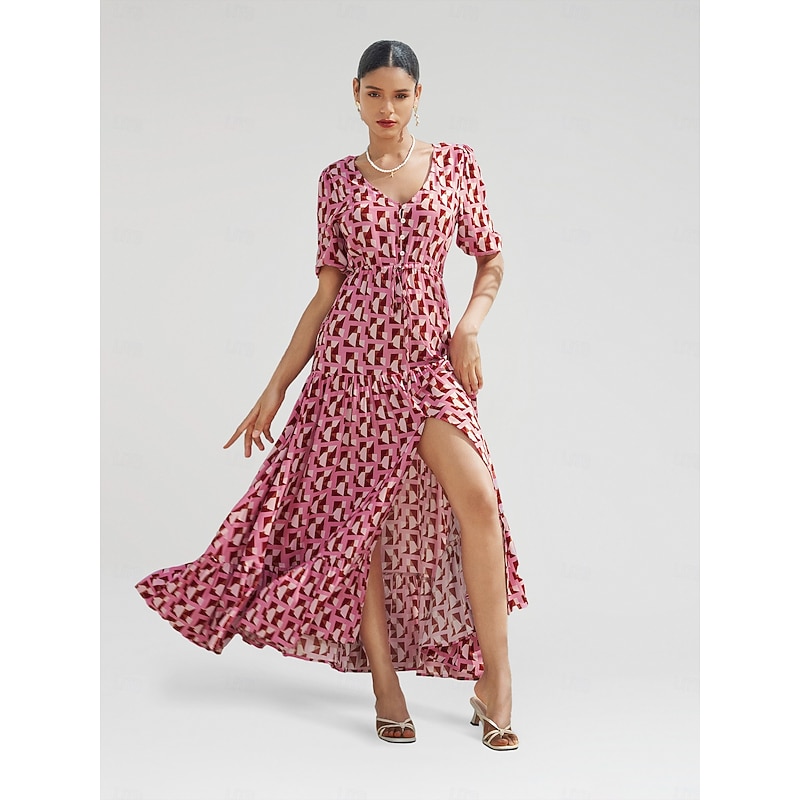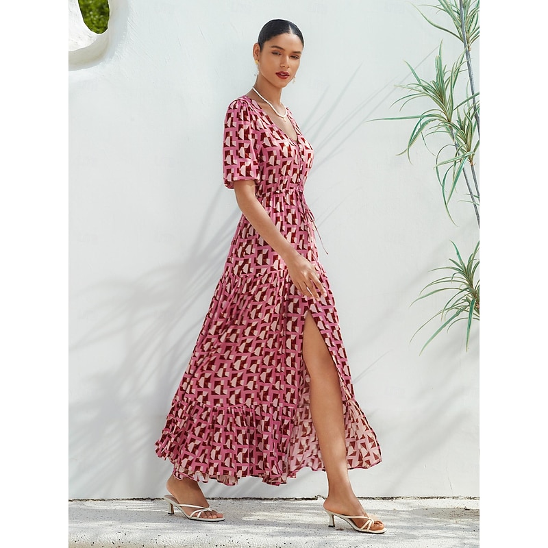 Why Choose Women's Resort Wear Long Dress Maxi Dress Pink Short Sleeve Geometic Drawstring Spring & Summer V Neck beach vacation S M L?