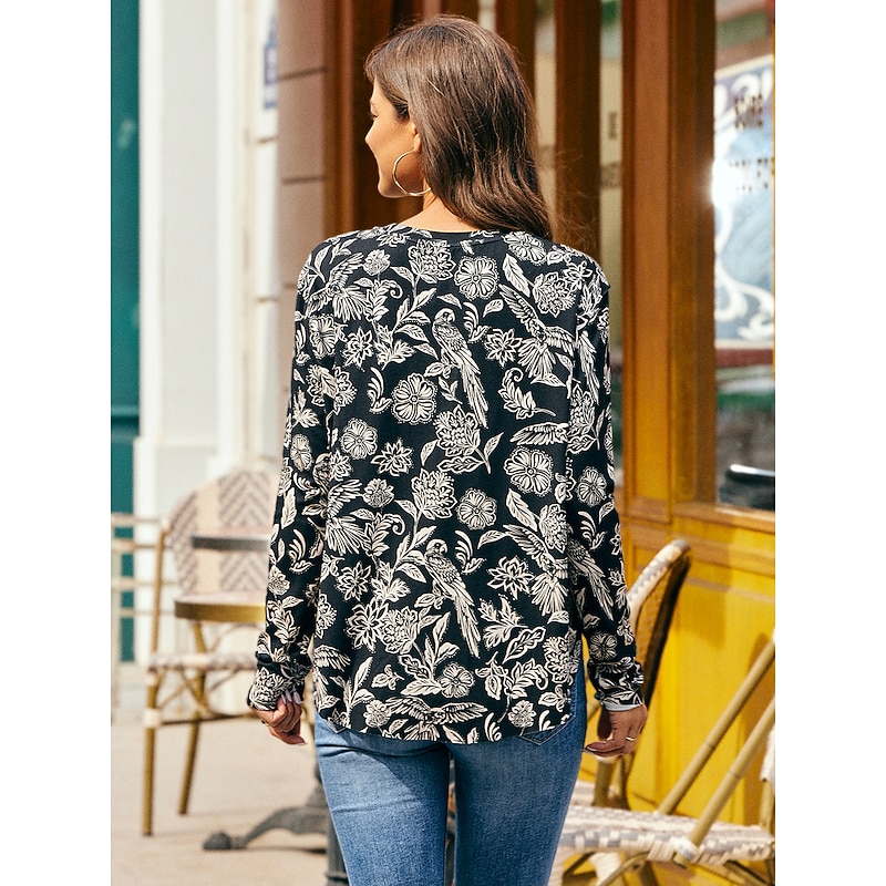 Why Choose Floral Print Round Neck Shirt Blouse?