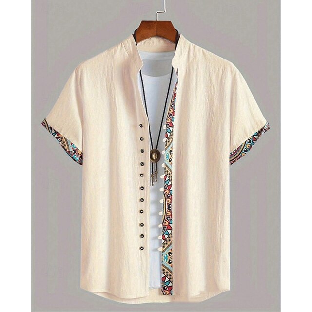 This Men's Shirt Linen Shirt Casual Shirt Button Up Shirt Cotton Shirt Color Block Vacation Street Apricot Short Sleeve Band Collar Summer Clothing Apparel Splice combines elegant design with practical functionality. Every detail has been carefully considered to ensure you get the best possible experience. The magnificent construction means this product will serve you well for years to come.