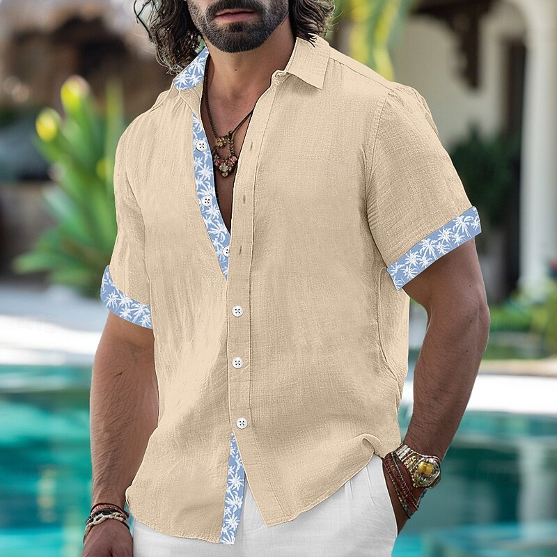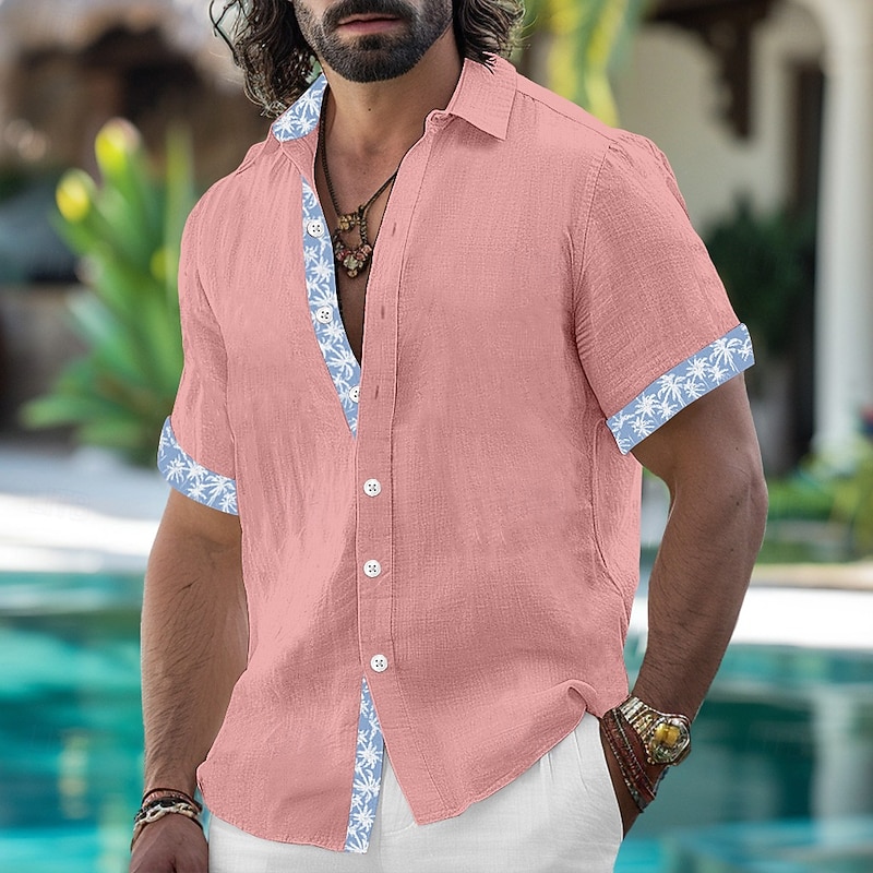 sizzling ! Men's Shirt Linen Shirt Summer Shirt Beach Wear Plain Vacation Casual White Pink Blue Khaki Short Sleeve Lapel Summer Spring & Summer Clothing Apparel