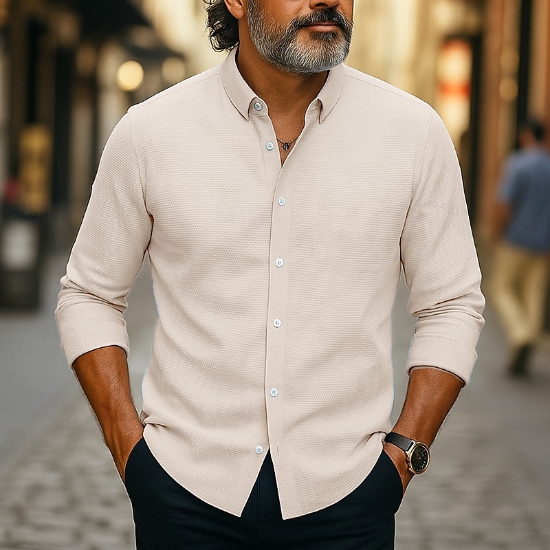 $22.99 - Men's Shirt Waffle Shirt Casual Shirt Button Up Shirt Untucked Shirts Black White Blue khaki Long Sleeve Plain Lapel Casual Daily Clothing Apparel Knitwear Fashion Streetwear Cool 2025. Shop for cheap Men's Casual Shirts online? Buy at lightinthebox.com on sale today!