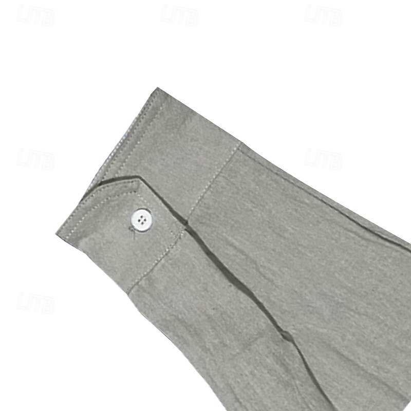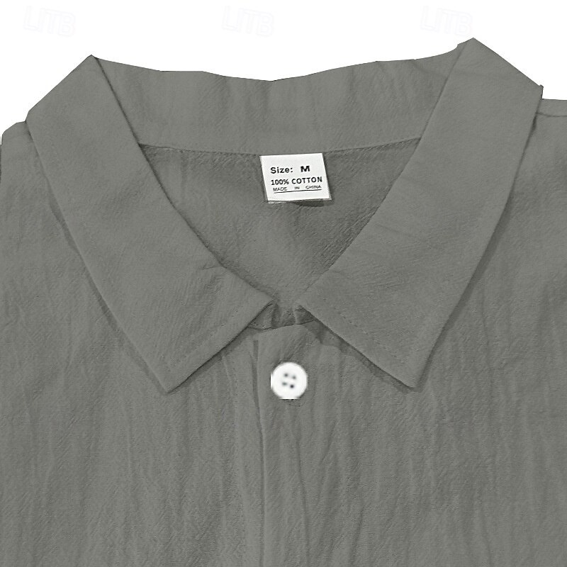 More information about Men's Cotton Shirt Black White khaki Dark Gray Light Blue Long Sleeve Plain Lapel Vacation Hawaiian Button-Down Clothing Apparel 100% Cotton Fashion Casual plush