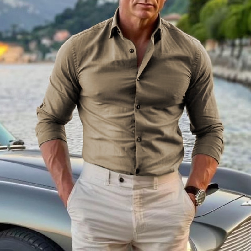 Highlights - Made from 100% cotton for ultimate comfort - superb for both spring and summer seasons - Features a contemporary lapel neckline - Long sleeves for added coverage - Casual style ideal for vacations - Specifically designed for men