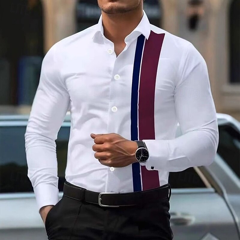 More information about Men's Shirt Dress Shirt Casual Shirt Button Up Shirt Plain Formal Wedding Black White Blue Long Sleeve Turndown Summer Spring Clothing Apparel Patchwork
