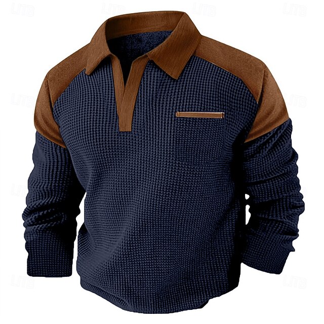 This Men's Waffle Tee Long Sleeve V Neck Lapel Fall Spring & Fall Solid Color Fashion Basic Casual Color Block Street Casual Sports Black Navy Blue khaki Top Tee for Men combines elegant design with practical functionality. Every detail has been carefully considered to ensure you get the top possible experience. The premium construction means this product will serve you well for years to come.