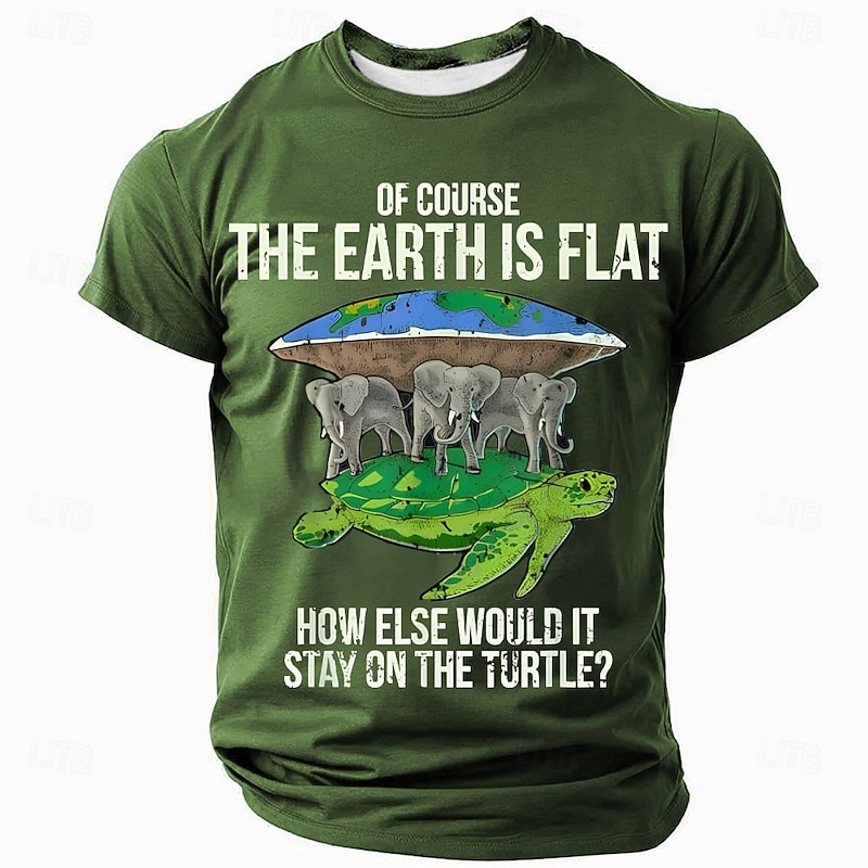 sizzling ! Mens Funny Flat Earth Turtle Elephant Graphic T-Shirt - Humorous Mythology Tee for Lifestyle