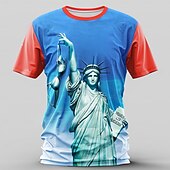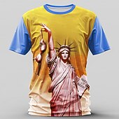 : Featuring a striking 3D print of the iconic Statue of Liberty, this T-shirt stands out with its bold and latest style. The vibrant blue base is complemented by contrasting orange elements, such as the sleeves and collar, providing a dynamic and eye-catching contrast.