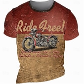 Highlights [Fabric] Crafted from a high-quality polyester blend, this t-shirt ensures excellent breathability and comfort, making it an ideal choice for everyday wear during the spring and summer months. The fabric offers micro-elasticity, enhancing mobility and ease. [Fit] This t-shirt features a short-sleeve, crew neck design that provides a tailored fit, offering a relaxed yet modern look perfect for casual outings and sports. [Design Highlights] The t-shirt showcases a vintage motorcycle graphic with inspiring phrases such as Ride Free! and You'll never see a Bike Outside a Shrink's Office, paired with a striking color contrast of red and beige. Its distressed and weathered effect gives it a nostalgic and adventurous vibe, appealing to motorcycle enthusiasts and fans of retro fashion. [Occasions] This versatile t-shirt is suitable for street sports, outdoor activities, and casual events. Its classic retro style is perfect for those who want to make a fashion statement while enjoying comfort and a touch of nostalgia. [Sizes] Available in a range of sizes from S to XXXL, ensuring a suitable fit for various body types and personal preferences. Perfect for everyday use. premium materials and excellent craftsmanship ensure long-lasting durability.