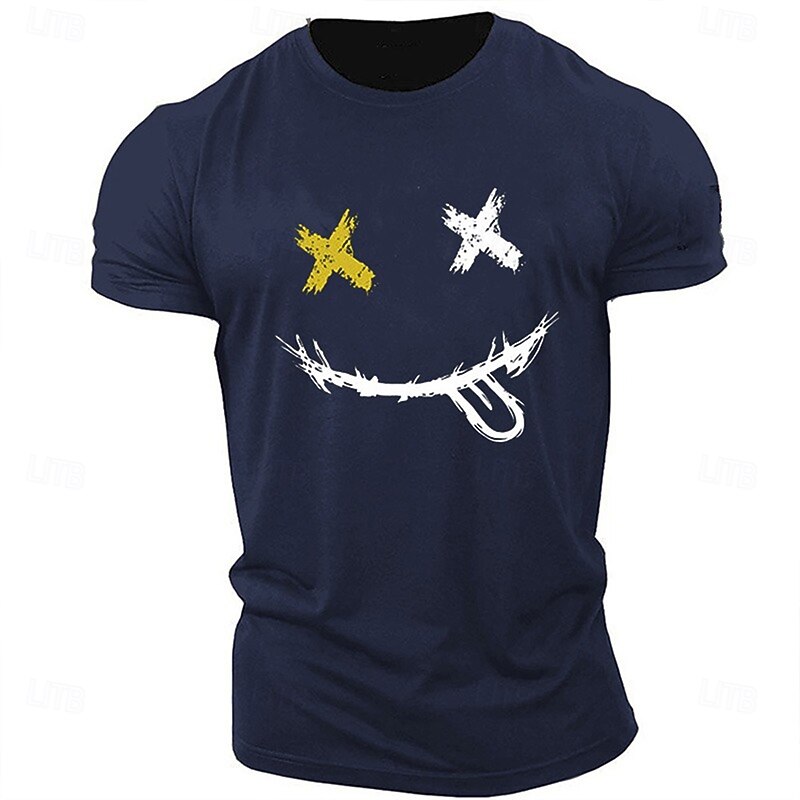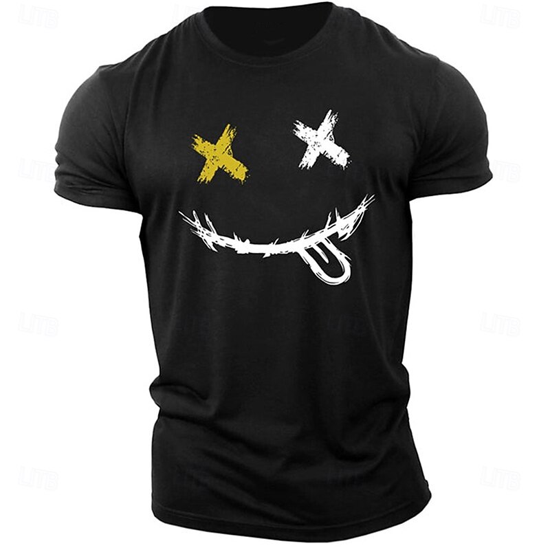 More information about Men's Casual Short Sleeve Graphic T-Shirt with X-Eyes Smiley Face Design
