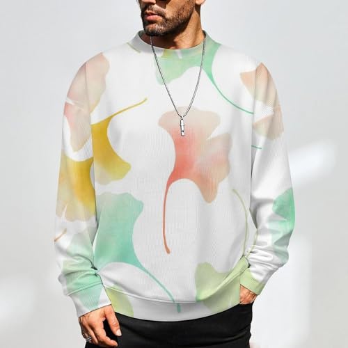 MoBlinko Mens Crewneck Sweater Colorful Tropical Leaves Mens Sweater Sweaters for Men Long Sleeve Lightweight Pullover