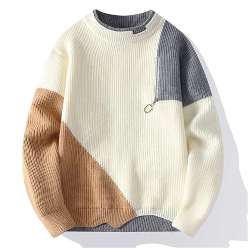 Men's Thick comfortable Knit Sweater O-Neck Patchwork Loose Knitted Pullovers