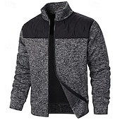 More information about Men's Dress Sweater Cardigan Sweater Zip Sweater Sweater Jacket Ribbed Knit Regular Knitted Solid Color Stand Collar cozy Ups Casual Daily Wear Clothing Apparel Summer Fall Black Red S M L