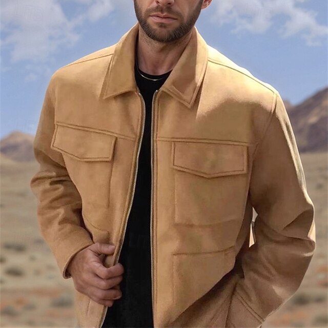 This Men's Faux Suede Jacket Cargo Jacket Casual Jacket Vacation Daily Warm Pocket Fall Winter Plain Fashion retro Lapel Regular Black Brown Gray Jacket combines elegant design with practical functionality. Every detail has been carefully considered to ensure you get the best possible experience. The finest construction means this product will serve you well for years to come.