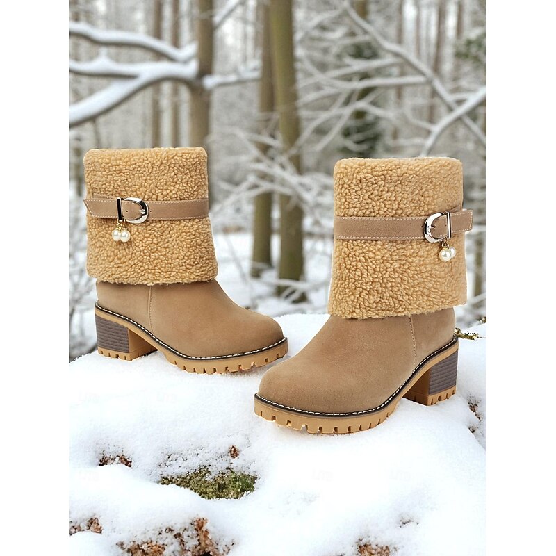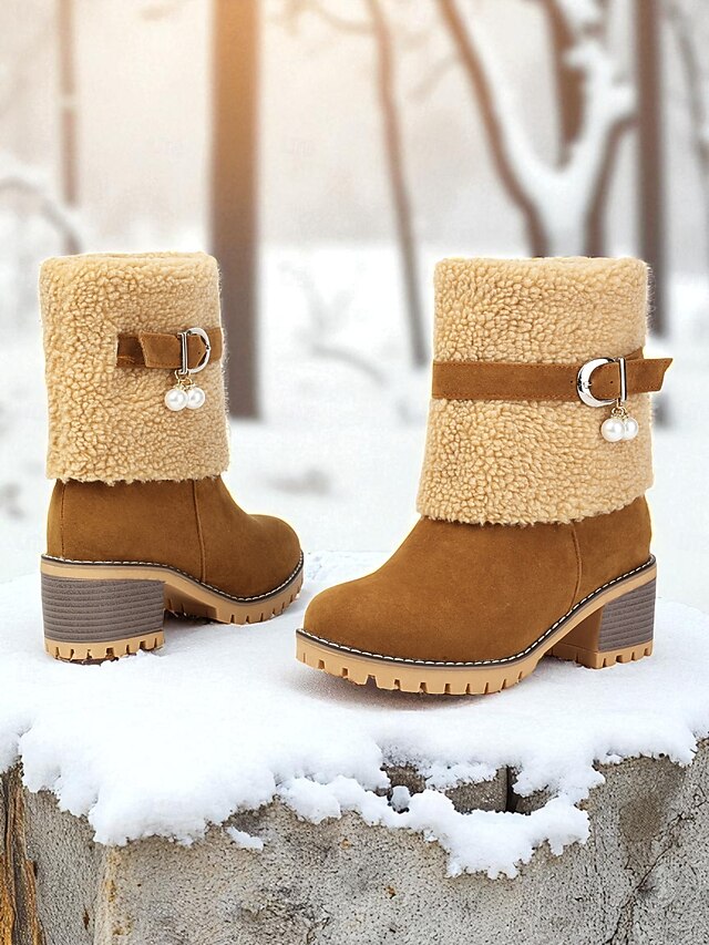 $46.99 - Women's Brown Faux Suede Fur Cuff Boots – Warm Block Heel Winter Shoes for Outdoor, Work and Casual Wear 2025. Shop for cheap Snow & Winter Boots online? Buy at lightinthebox.com on sale today!