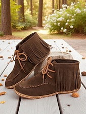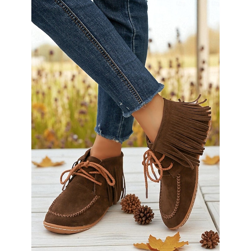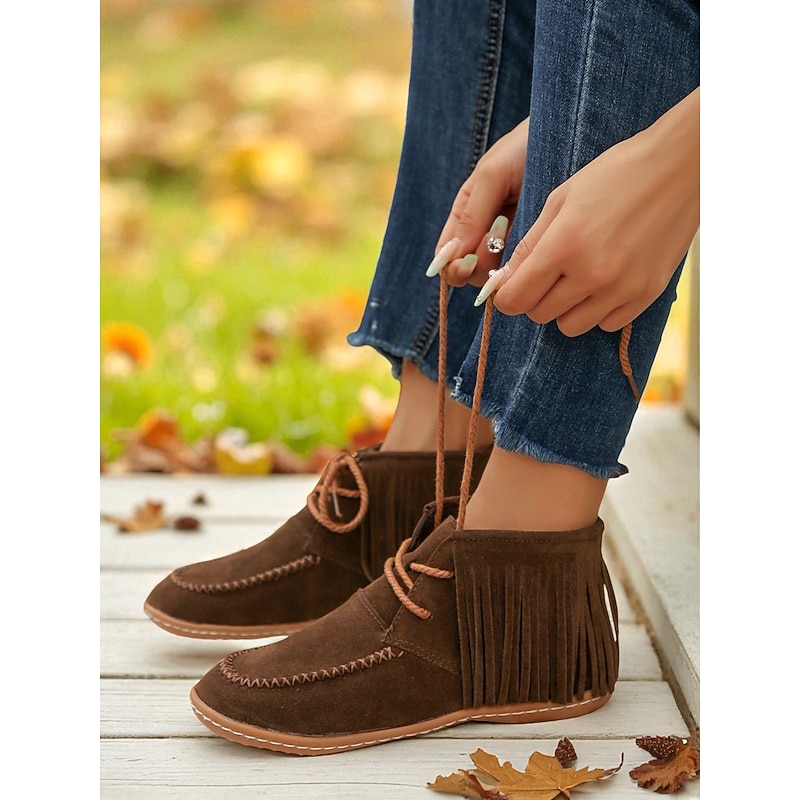 $26.99 - Women's Fringe Faux Suede Moccasin Boots – Retro Lace-Up Ankle Boots for Fall, Outdoor Adventures and Casual Daily Style 2025. Shop for cheap Ankle Boots online? Buy at lightinthebox.com on sale today!