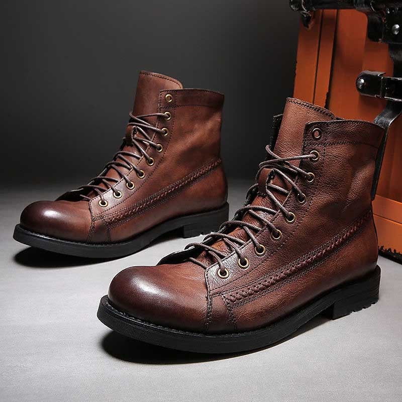 Highlights [Fabric and Material] : Crafted from high-quality PU, these men's combat boots showcase a sleek, polished finish. The robust construction ensures durability and protection, making them perfect for varied outdoor adventures. The outsole is crafted from premium leather, providing excellent grip and stability. [Fit and Style] : Designed in a vintage British style, these boots feature a classic lace-up design with reinforced eyelets for a secure fit. The round toe shape offers both comfort and a timeless look, ideal for enhancing a rugged yet refined appearance. [Design Highlights] : These boots boast intricate brogue detailing and splicing embellishments, adding sophistication and style. The gradient pattern offers a new-age twist, while the booties/ankle boot shaft provides a versatile look suitable for all-day wear. [Occasions] : Perfect for daily wear and outdoor activities, these boots offer a versatile option for various settings. Whether navigating city streets or exploring rugged terrain, these boots are designed to meet diverse lifestyle needs. [Size Information] : Available in a wide range of sizes from EU 38 to 48 (UK equivalent), thoughtfully catering to different foot shapes for a perfect fit, ensuring comfort and style for every wearer. Perfect for everyday use. premium materials and excellent craftsmanship ensure long-lasting durability.
