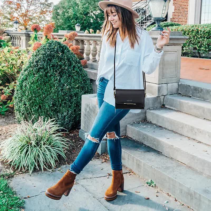 Why Choose Women's Black Crossbody Wallet Bag with Gold Accents and Adjustable Strap - Compact and sleek Shoulder Bag for Everyday Use?