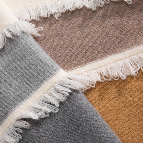 - This sweater is not only designed with color blocking, but also has short tasseled fringe at the splices, making it present-day and personalized.