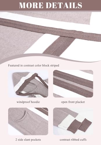 Fabric type: Fabric: 52% Viscose, 27% Polyester, 21% NylonCare instructions: Soft machine wash or hand wash / Do not bleachOrigin: ImportedClosure type: Pull OnSize Guide: S=US 4-6, M=US 8-10, L= US 12-14, XL=US 16-18, XXL=US 20-22. Last picture is the size chart, if you are not sure about the size, please contact us without hesitationTrendy knitted cardigan sweaters for women, featured in contrast color block striped detailing, with pockets and hood for convenience, flattering and cushy to wearOpen front placket. Long batwing sleeves. Ribbed cuffs. Slouchy drop shoulder. Below the knee length. 4 colors: Apricot Khaki/ Rose Red/ Mint Green/ PinkElegant color block cardigan sweater for women, with hood design to prevent the wind, oversized and boxy fit, can dress it up and down to match with your outfit of the daySuitable for daily life, work office, school, street, dating, evening party, night club, cocktail, wedding guest, going out, night out, Christmas, Halloween, New Year, weekend gathering, vacation, holidays and so on Perfect for everyday use. premium materials and excellent craftsmanship ensure long-lasting durability.