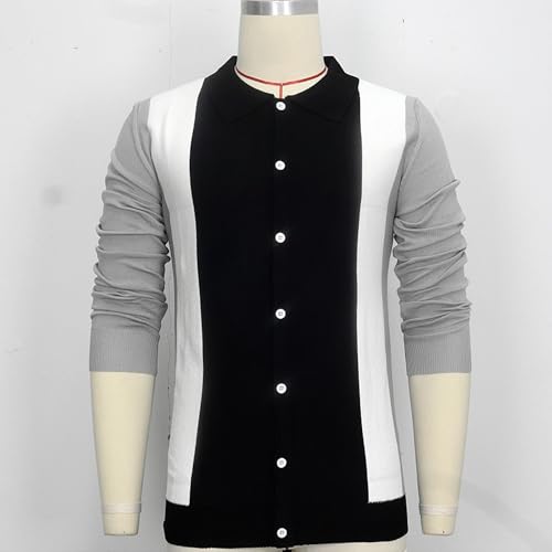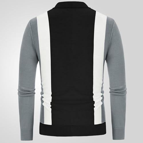 More information about Men's Lapel Splicing Color Blocking Sweater Men Long Sleeve Buttons Down Sweaters Men's Slim Fit Sweater
