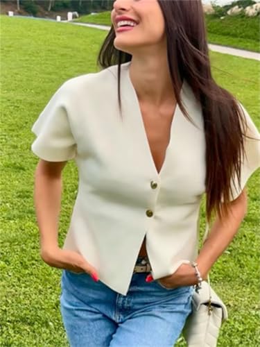 • Short sleeve button up cardigan: This short sleeve cropped cardigan is ideal for pairing with your favorite summer outfits, such as high-waisted jeans or shorts