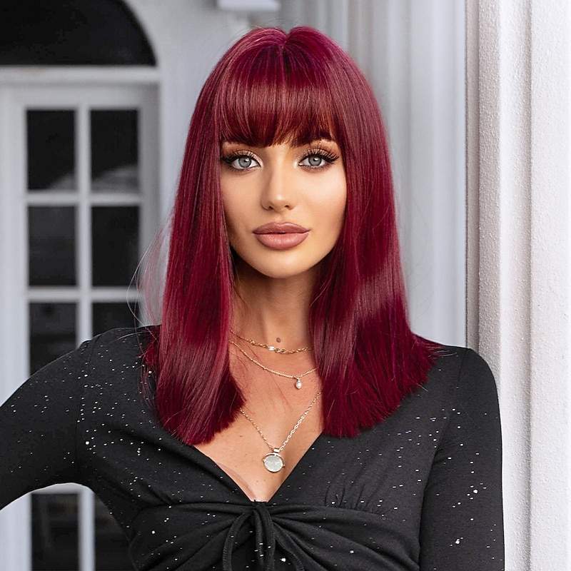 $23.99 - HAIRCUEB Dark Wine Natural Straight Wigs With Bangs for Women Wine Red Cosplay Silky Synthetic Hair Wigs 2025. Shop for cheap Synthetic Trendy Wigs online? Buy at lightinthebox.com on sale today!