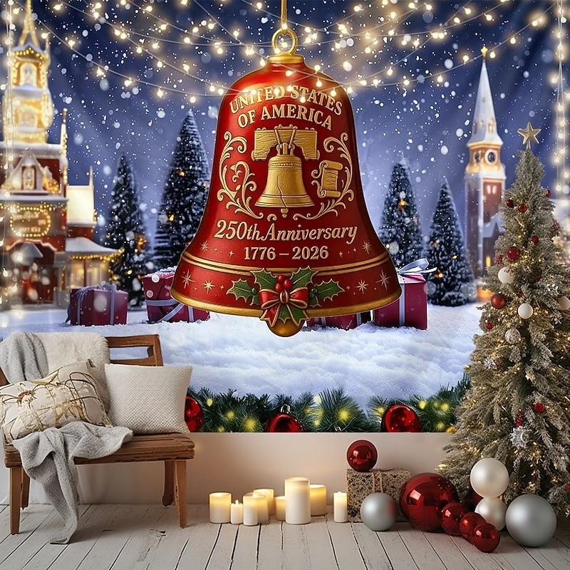 sizzling ! United States 250th Anniversary Christmas Wall Tapestry Backdrop, 2025 Xmas Elegant Commemorative Doorbell Ornament, Hanging Christmas Tree Decoration for Patriotic Holidays