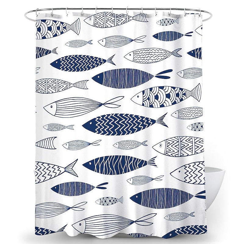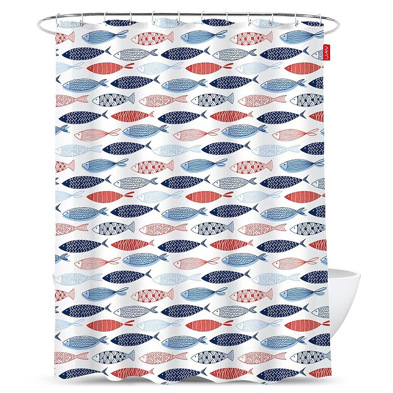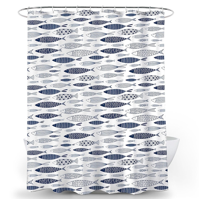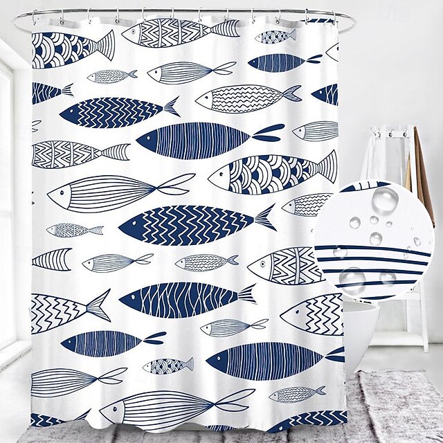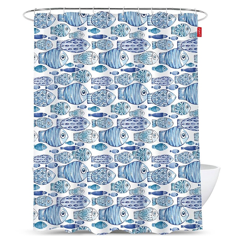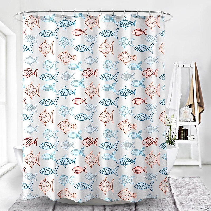 Shower Curtain with Hooks 180cm*180cm(70"*70") Polyester Washable Waterproof Colorful Fishes for Kid Abstract present-day Cartoon Pattern