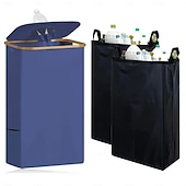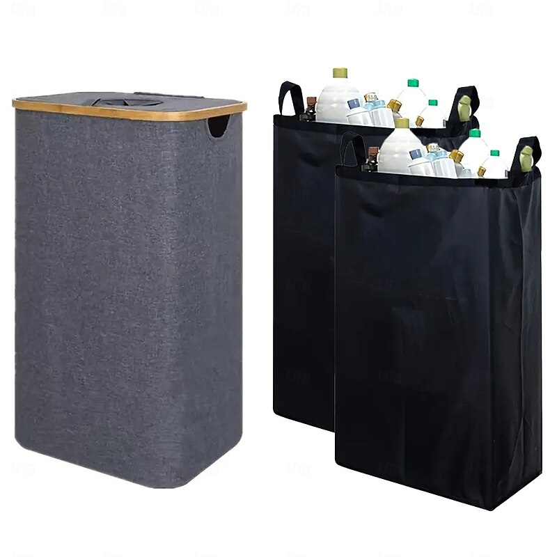 $31.99 - Recycling Bin for Kitchen Indoor Home, 100L Laundry Hamper with 2 Removable Inner Bags, Bamboo Frame, Oxford Fabric, Self-Closing Top Opening, Side Pocket, Organizer for Bottles Clothes Toys Office Dorm 2025. Shop for cheap Recycling Bin online? Buy at lightinthebox.com on sale today!