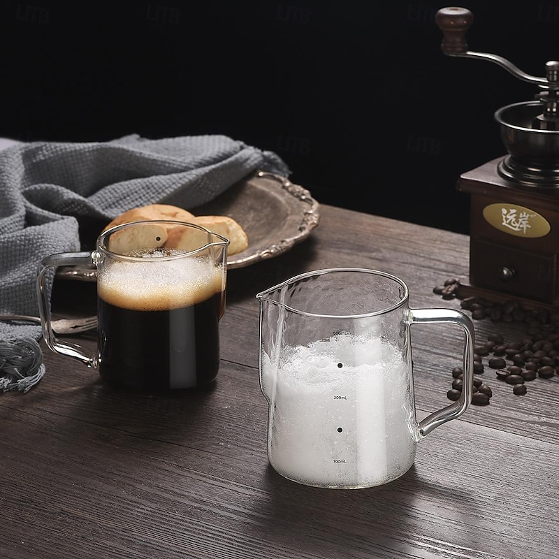 Why Choose Glass Coffee Milk Frothing Jugs with Scale Milk Frother Pitcher Barista Espresso Coffee Latte Milk Pitcher Coffee Jugs 300/500ml?