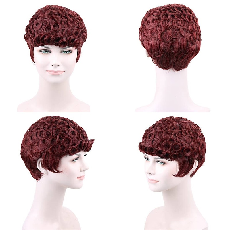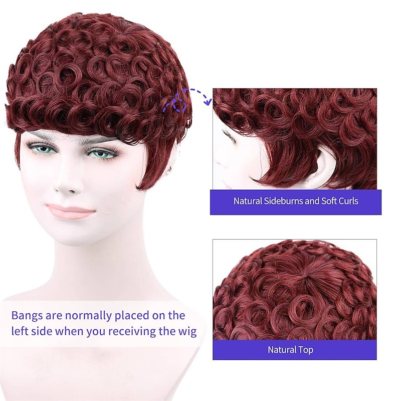 $24.99 - Short Curly Pixie Cut Wigs with Bangs Wine Red Color Short Human Hair Wigs for Black Women Cute Daily Wear Wig Burgundy 99J Color 2025. Shop for cheap Black & African Wigs online? Buy at lightinthebox.com on sale today!