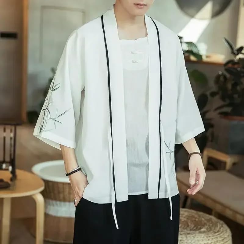 Embroidery Kimono Cardigan Men Japanese Male Summer Beach Kimono Outerwear