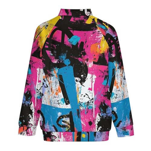 More information about Bomber Jackets for Men 2025 Graffiti Print Long Sleeve Windbreaker Casual Full Zip Novelty Lightweight Varsity Jackets