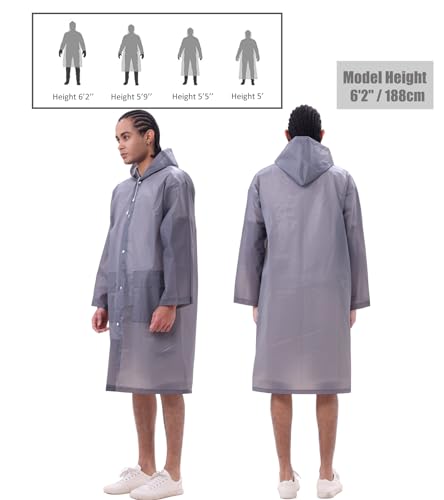 Fabric type: EVA PlasticCare instructions: Hand Wash OnlyOrigin: ImportedFur description: Ethylene Vinyl AcetateJoin Prime Cancel anytimeUpgraded with Two Large Front Pockets: The EVA rain ponchos for adults features two spacious front pockets - perfect for keeping your phone, keys, wallet, gloves, or even warming your hands while staying dry. Say goodbye to wet pockets and lost essentials in the rain!Full-Body Protection for All Weather: Designed with a drawstring hood, full-length sleeves, and snap-button closures, this raincoat ensures complete protection for head, neck, arms, and legs. The extra-long cut keeps both your upper body and pants dry, even in heavy rain.Ideal for Every Outdoor Adventure: From theme parks like Disney World and music festivals to hiking trails, marathons, water rides, camping trips, outdoor sports events, and more - our packable rain jacket is your go-to solution. Also great for cosplay costume ensemble.Lightweight & Durable: Made from high-quality EVA (0.15mm thick), this reusable rain poncho is waterproof, quick-drying, and built to last. Unlike flimsy disposable options, it can be reused. Super compact and easy to pack whenever you need it.One Size Fits Most Adults: Sleeve Length: 31.5 in; Chest Width: 53.5 in; Total Length (with Hood): 57.4 in; Specially designed to accommodate most adult sizes (5'18 - 6'16, 88 - 220 lbs). No more bulky umbrellas or heavy rain jackets taking up space in your bag. Perfect for everyday use. premium materials and excellent craftsmanship ensure long-lasting durability.