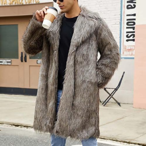More information about Mens Faux Fur Overcoats Luxury Furry Notched Lapel Cardigan Winter Cozy Sherpa Fluffy Outerwear Comfy Thermal Coats