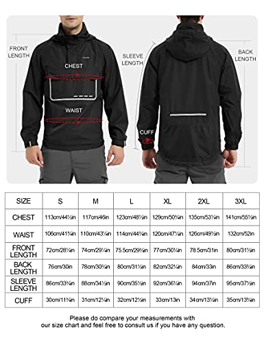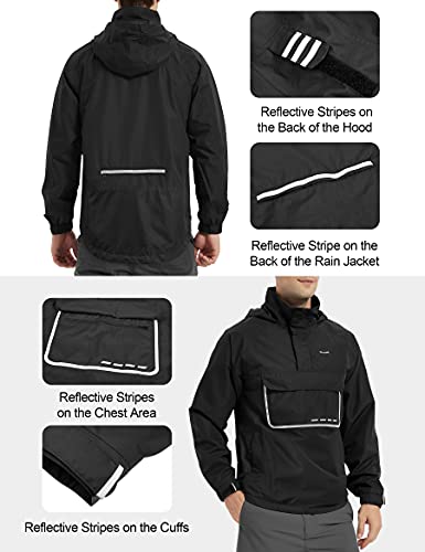 KUTOOK Men's Waterproof Pullover Rain Jacket Reflective Hooded Windbreaker Lighteweight Breathable Raincoat with Pockets