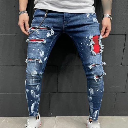 sizzling ! Men Slim Fit Ripped Patches Jeans Patch Ripped Regular Fit Jean Destroyed Motorcycle Denim Pants