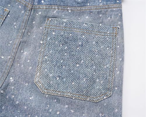 More information about Hip Hop Streetwear Rhinestone Jeans Men Women Rhinestone Denim Pants Male Straight Trousers