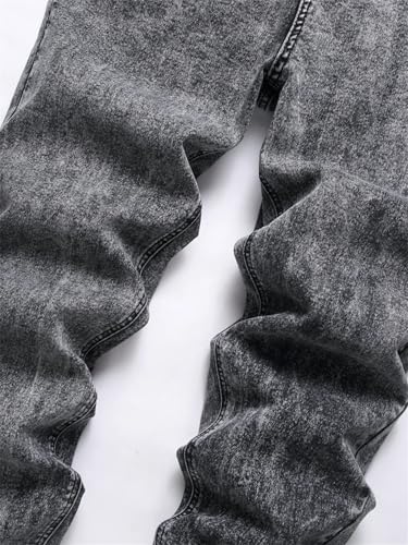 Men Stretch Jeans Pencil Pants Mid Waist Slim Fit Washed Distressed Straight Leg Skinny Denim Pants