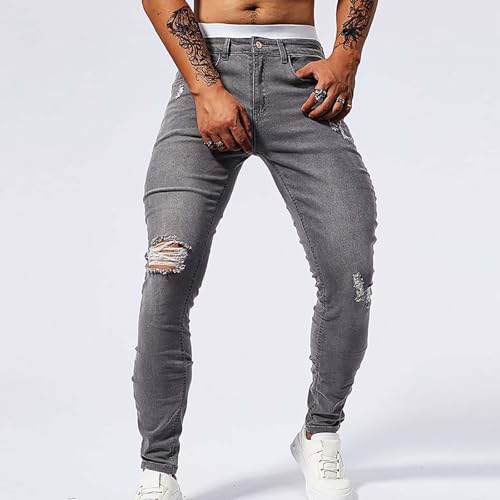 Ripped Denim Pants for Men chic Casual Utility Work Stretch Cargo Pants Vintage Clothes Streetwear 80s Outfits