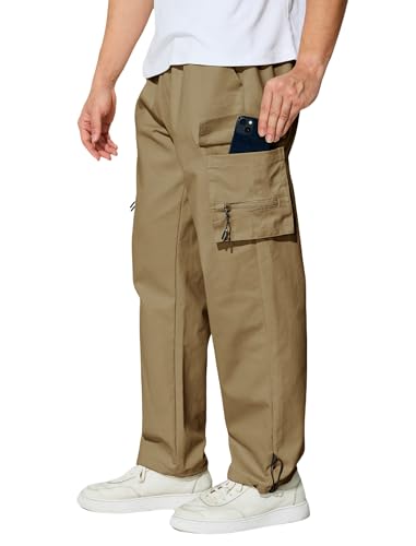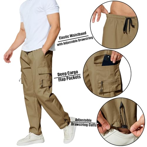 Men's Cargo Pants with Pockets Cotton Outdoor Elastic Waist Hiking Pants Casual Baggy Jogger Sweatpants
