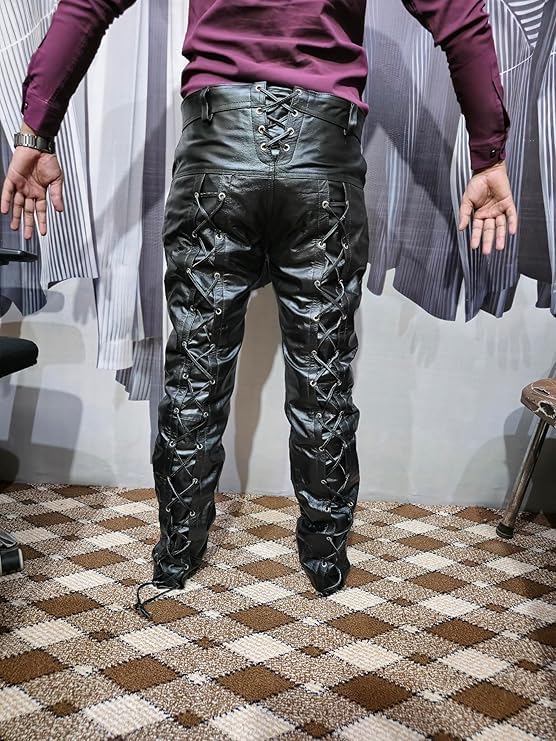 More information about Motorcycle Leather Pants for Mens Cowboy Western Native American Leather Pants Casual Breeches Fashion Pant