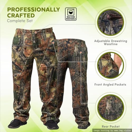 Fabric type: 60% Cotton, 40% PolyesterCare instructions: Machine WashOrigin: ImportedClosure type: DrawstringQUALITY & COMFORT: Our cozy sweatpants are made of a thick cotton polyester fabric for a cushy and durable experience.DETAILS: Pants include a full elastic waistband for a comfortable fit. Contains two angled hand pockets and one rear pocket for storage. Relaxed cuff finish.VERY FUNCTIONAL: After the hunt slip into these soft and cozy sweatpants for a relaxing experience! These versatile camo sweatpants are perfect for casual wear, sports, and even for lounging around the house.STYLE: The Highland Timber Camouflage pattern is very versatile with its angles and depth perception, creating a very powerful 3D affect, making it come alive. With the color combinations and open space, you can get lost in almost any environment or season. The high definition and detail of the trees, branches and leaves, makes it a great hunting pattern.MACHINE WASH Perfect for everyday use. premium materials and excellent craftsmanship ensure long-lasting durability.