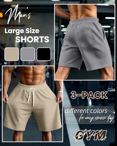 sizzling ! Ficerd 3 Pack Big and Tall Men's Sweat Shorts 9'' Plus Size Bermuda Drawstring Elastic Waist Shorts with 3 Pocket