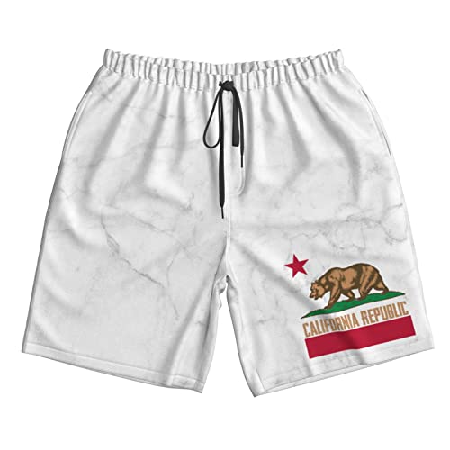 ONVOWO California Republic Gifts Mens Swim Trunks speedy Dry Swimwear Pockets Swim Shorts with Mesh Lining White-S